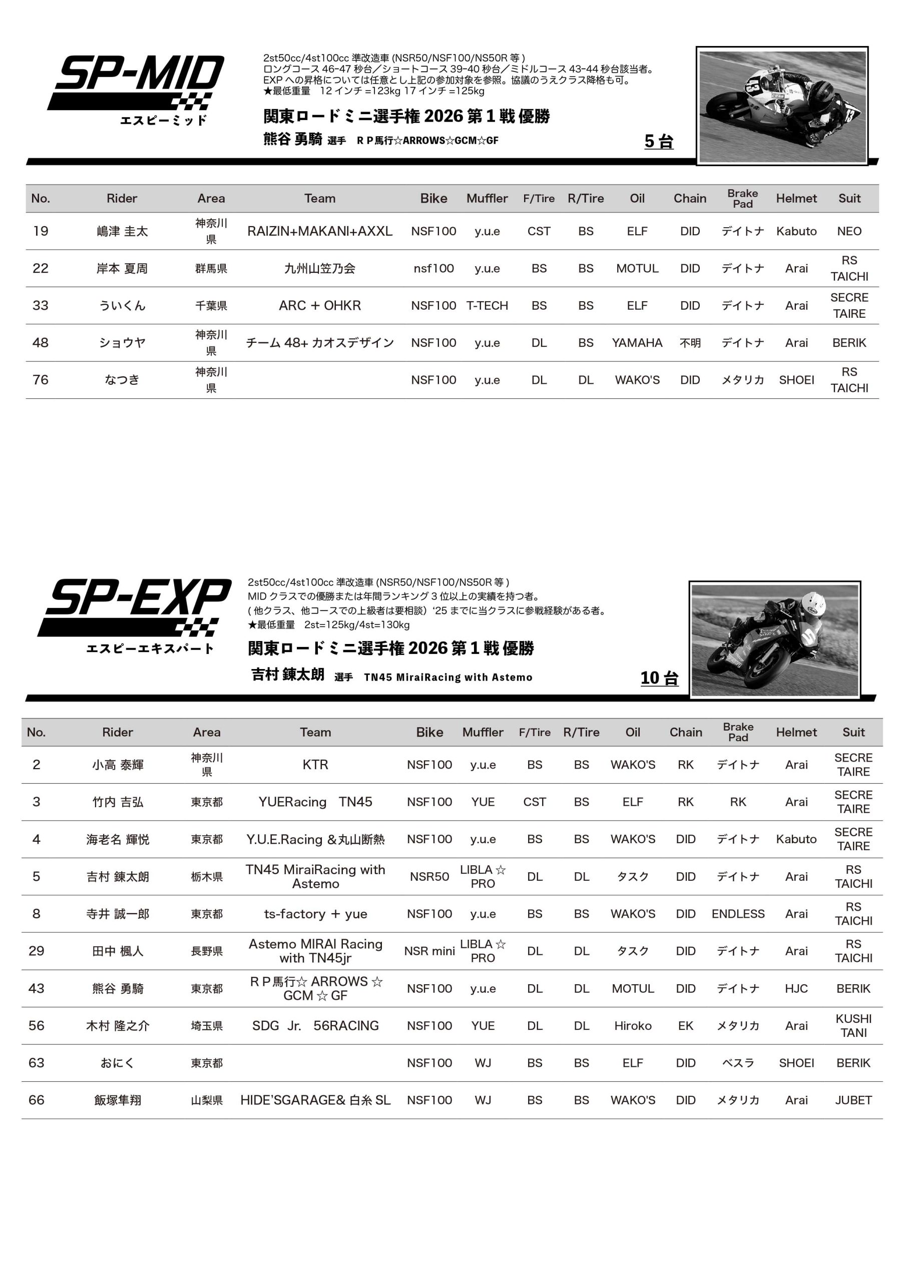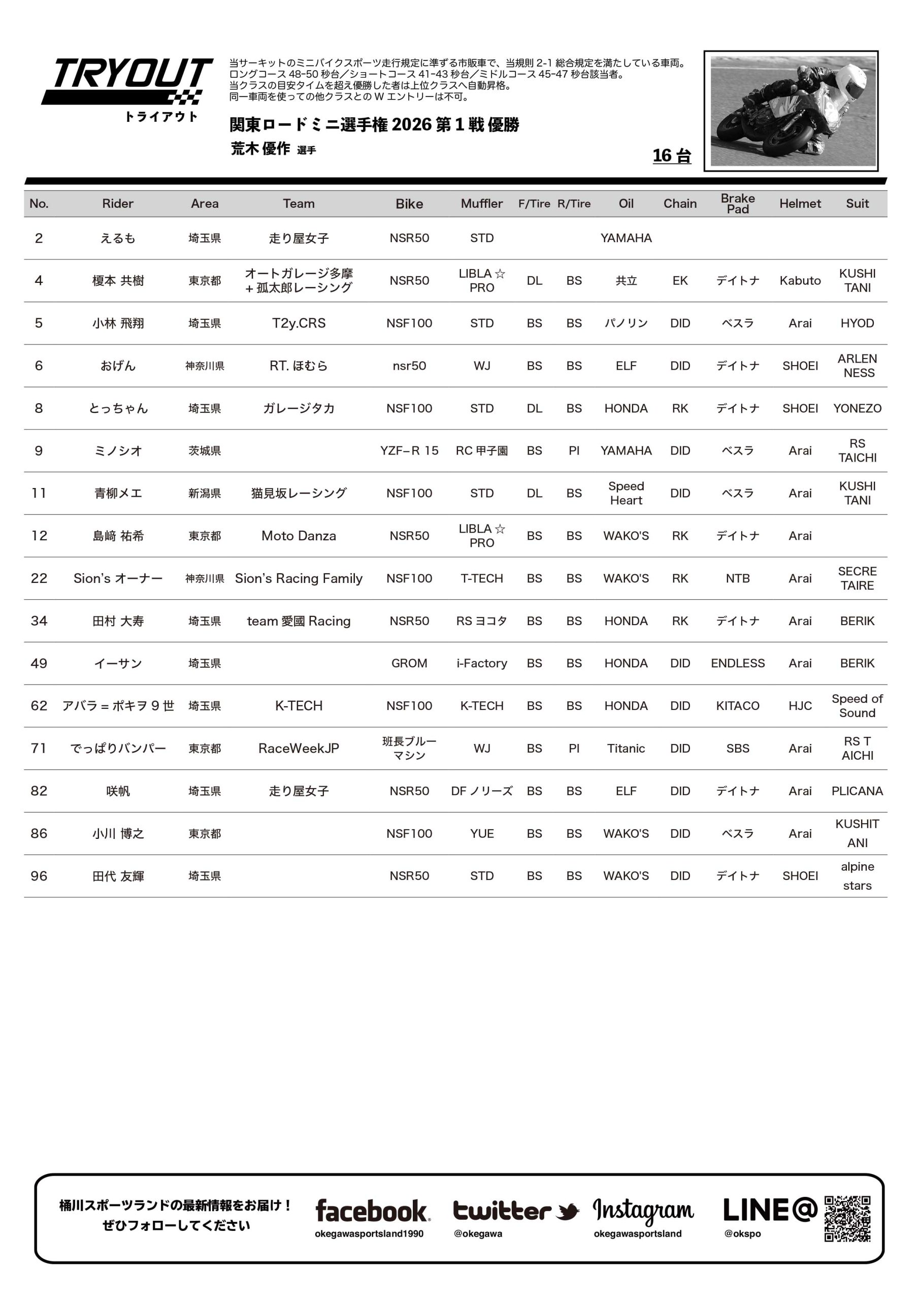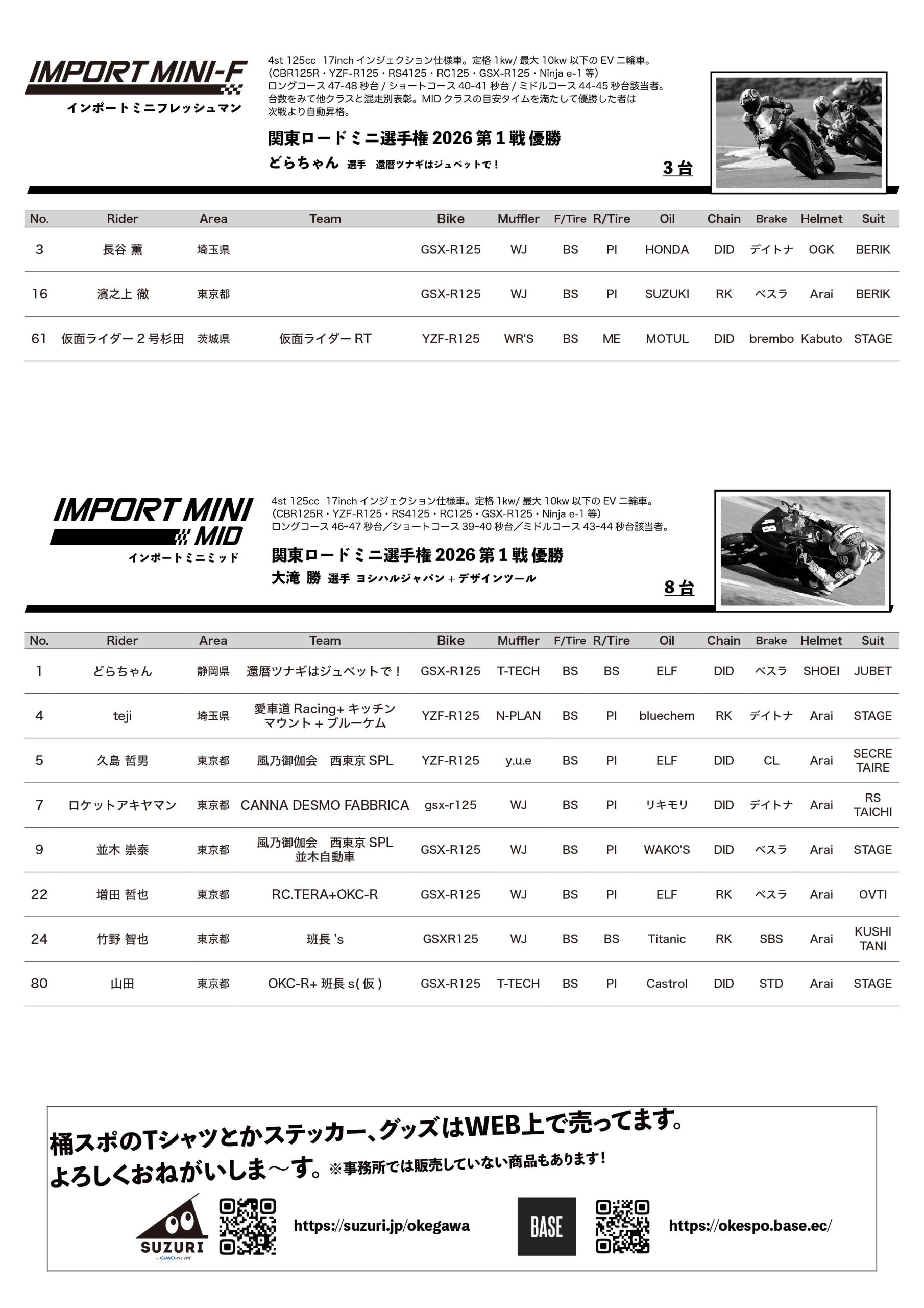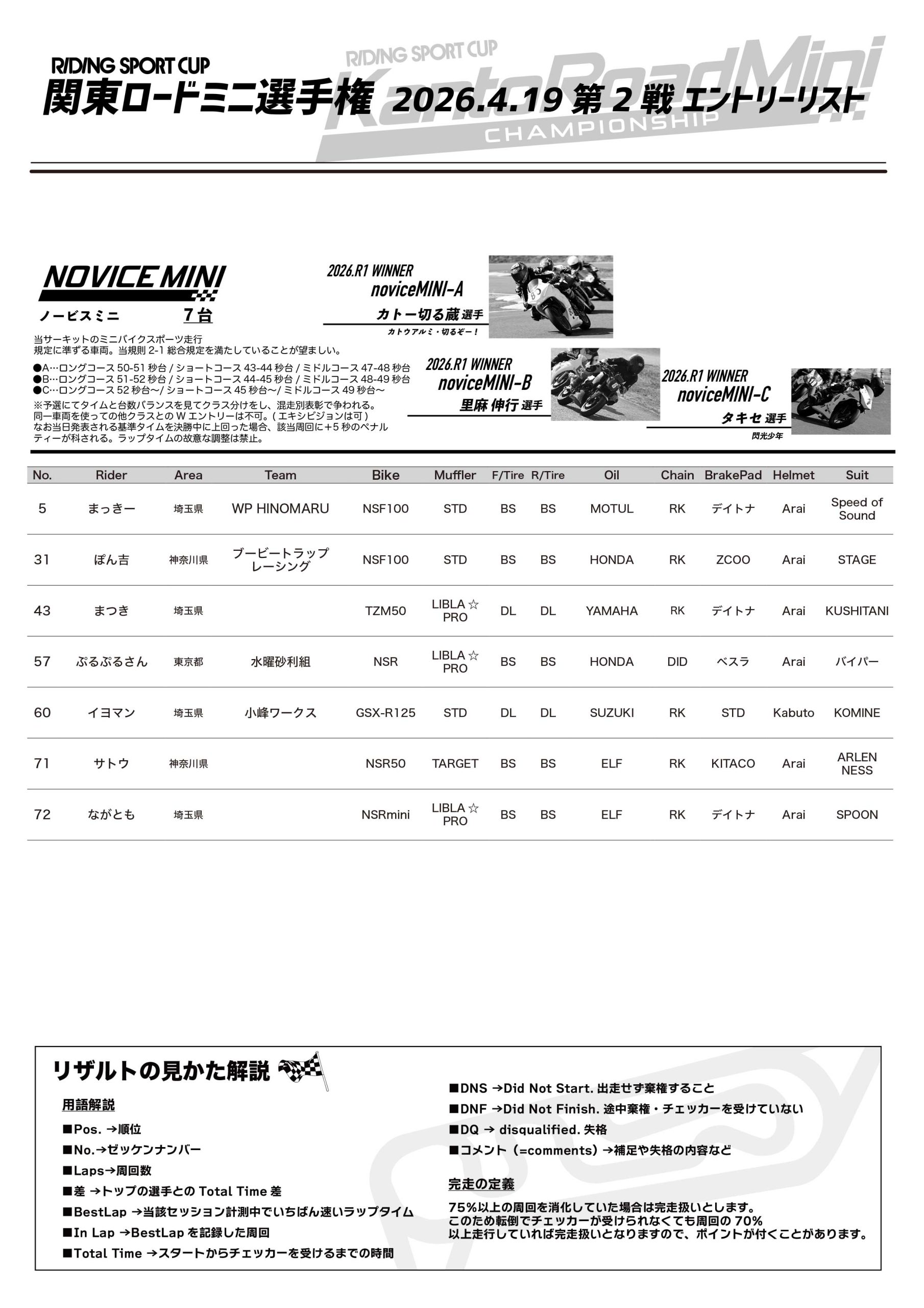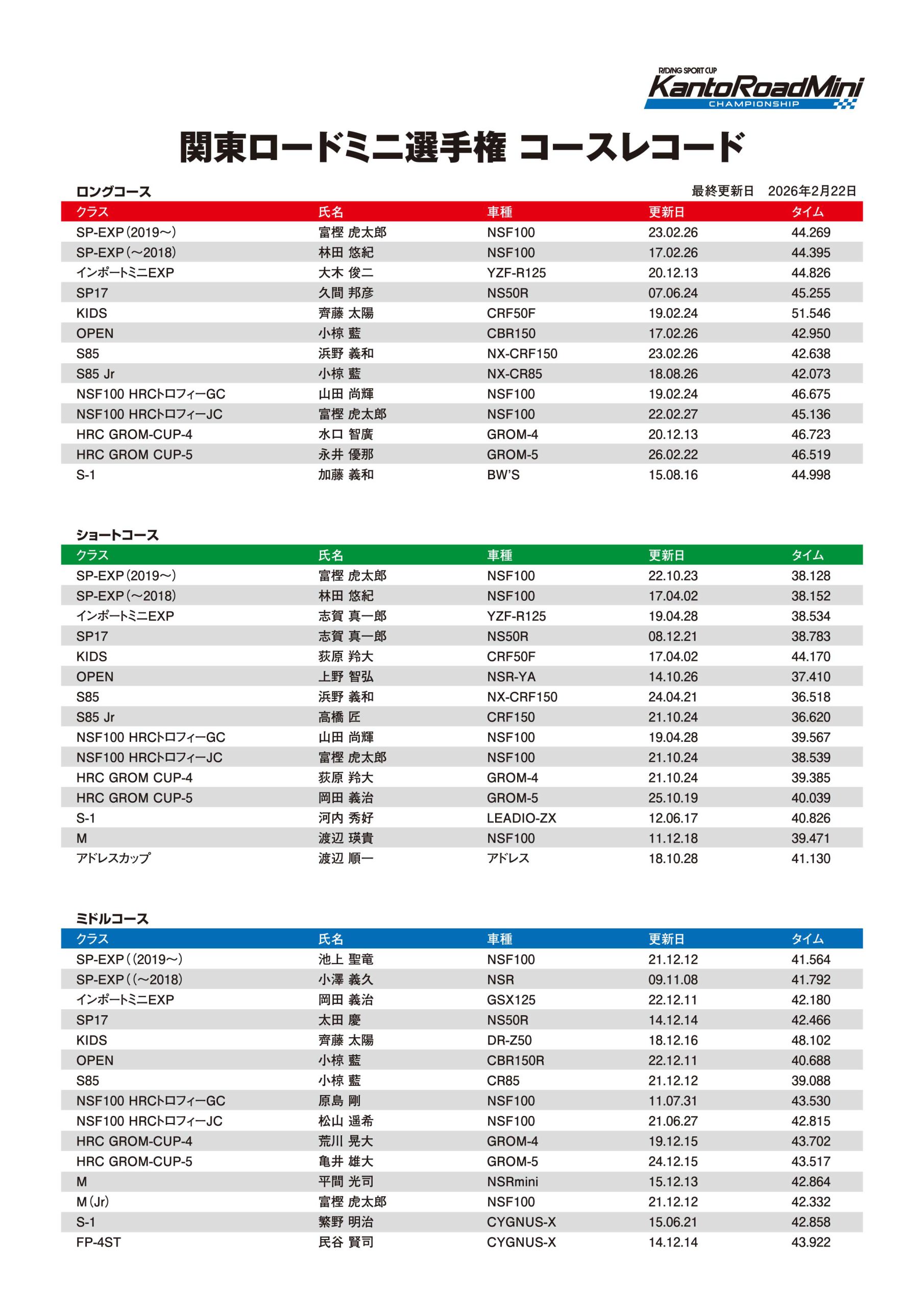 - 関東ロードミニ選手権2026第2戦リザルトダウンロード(PDF)