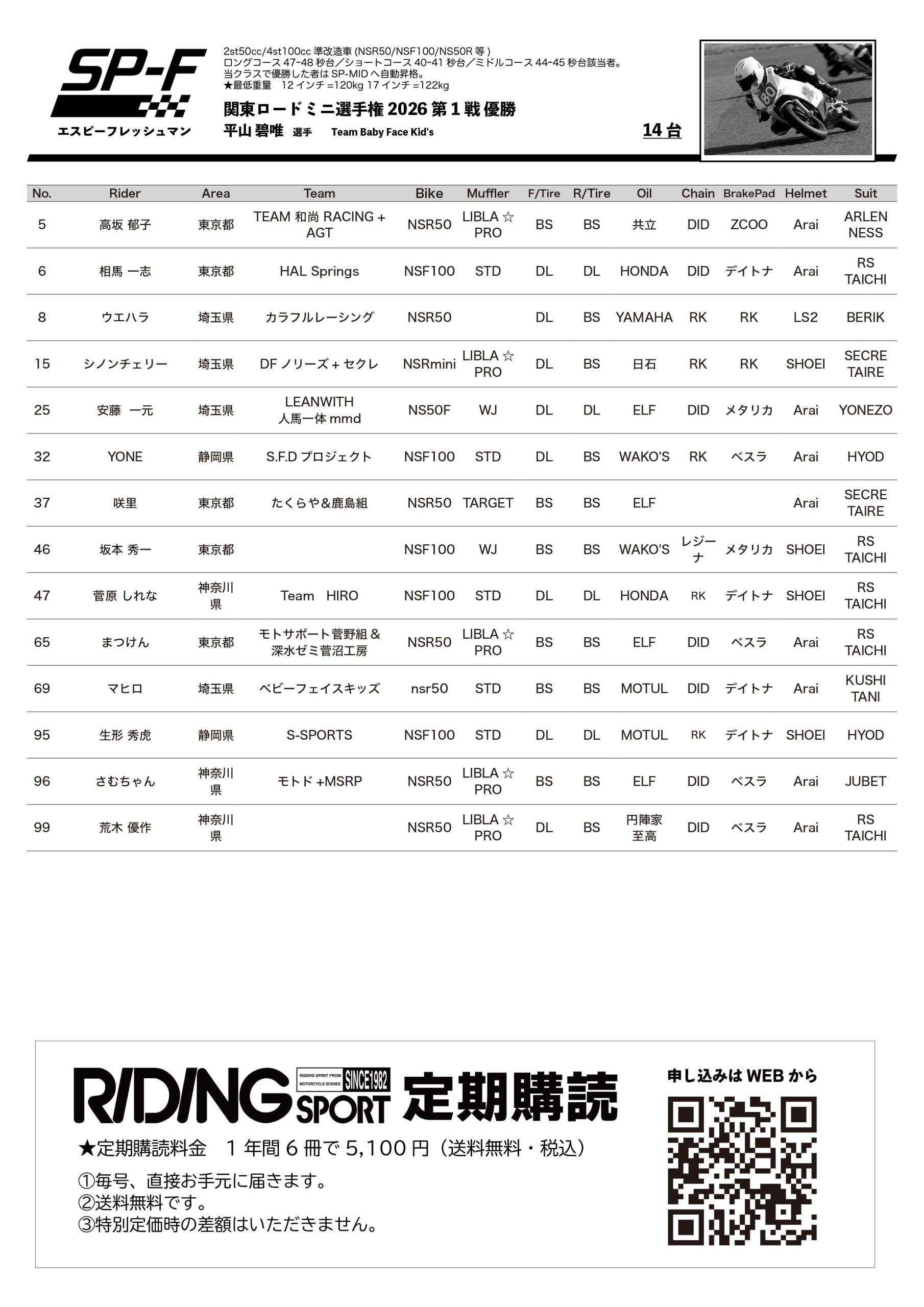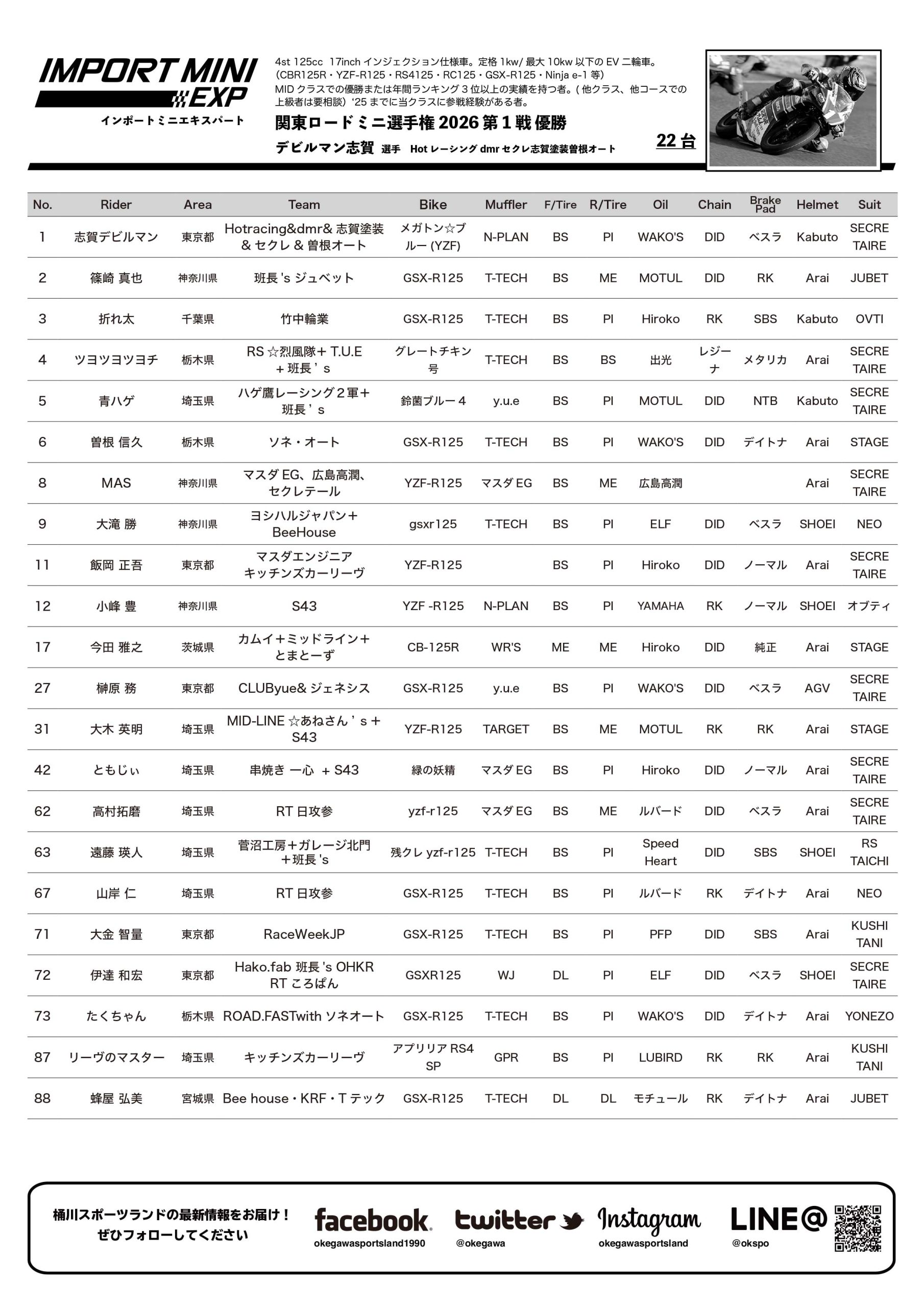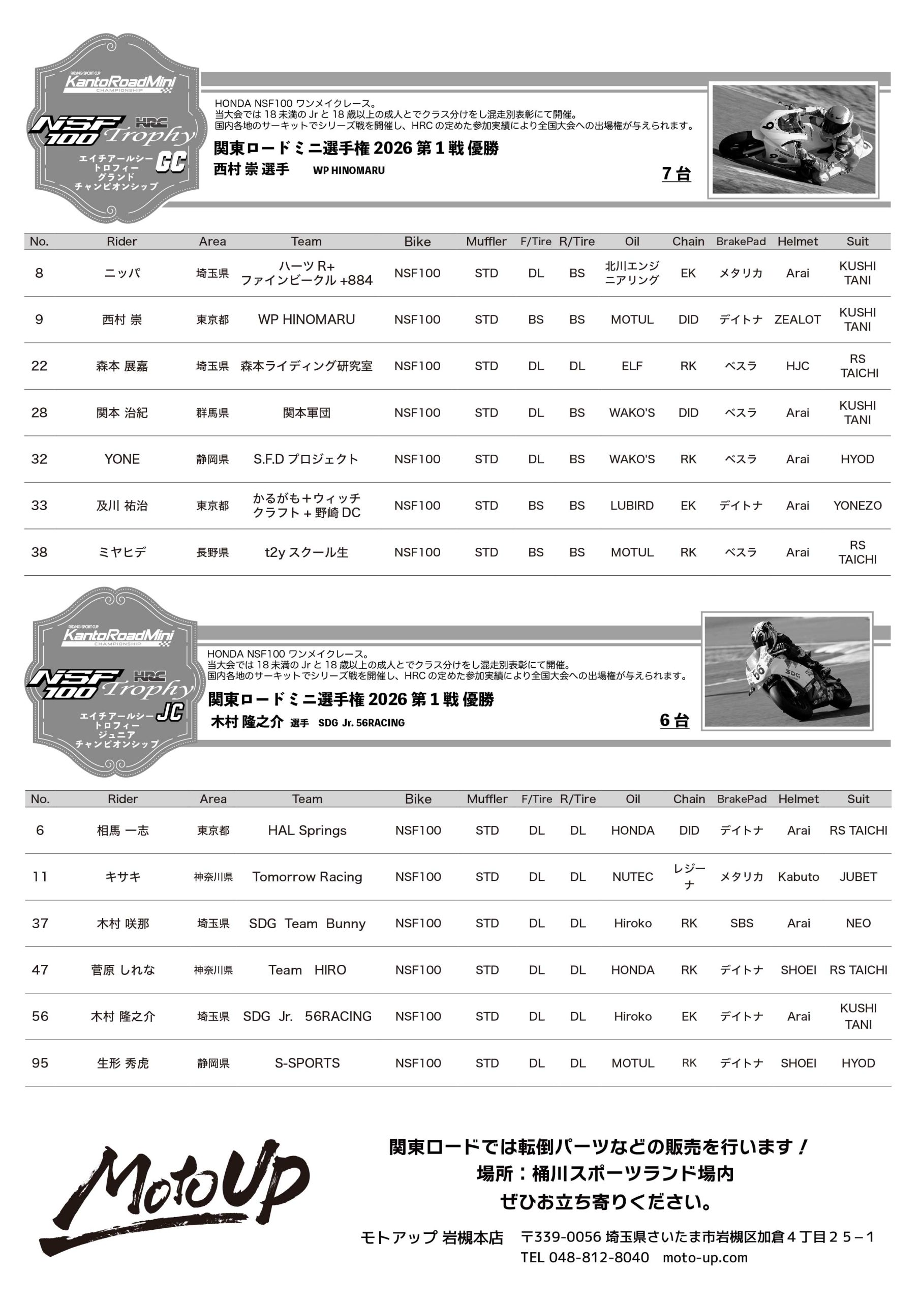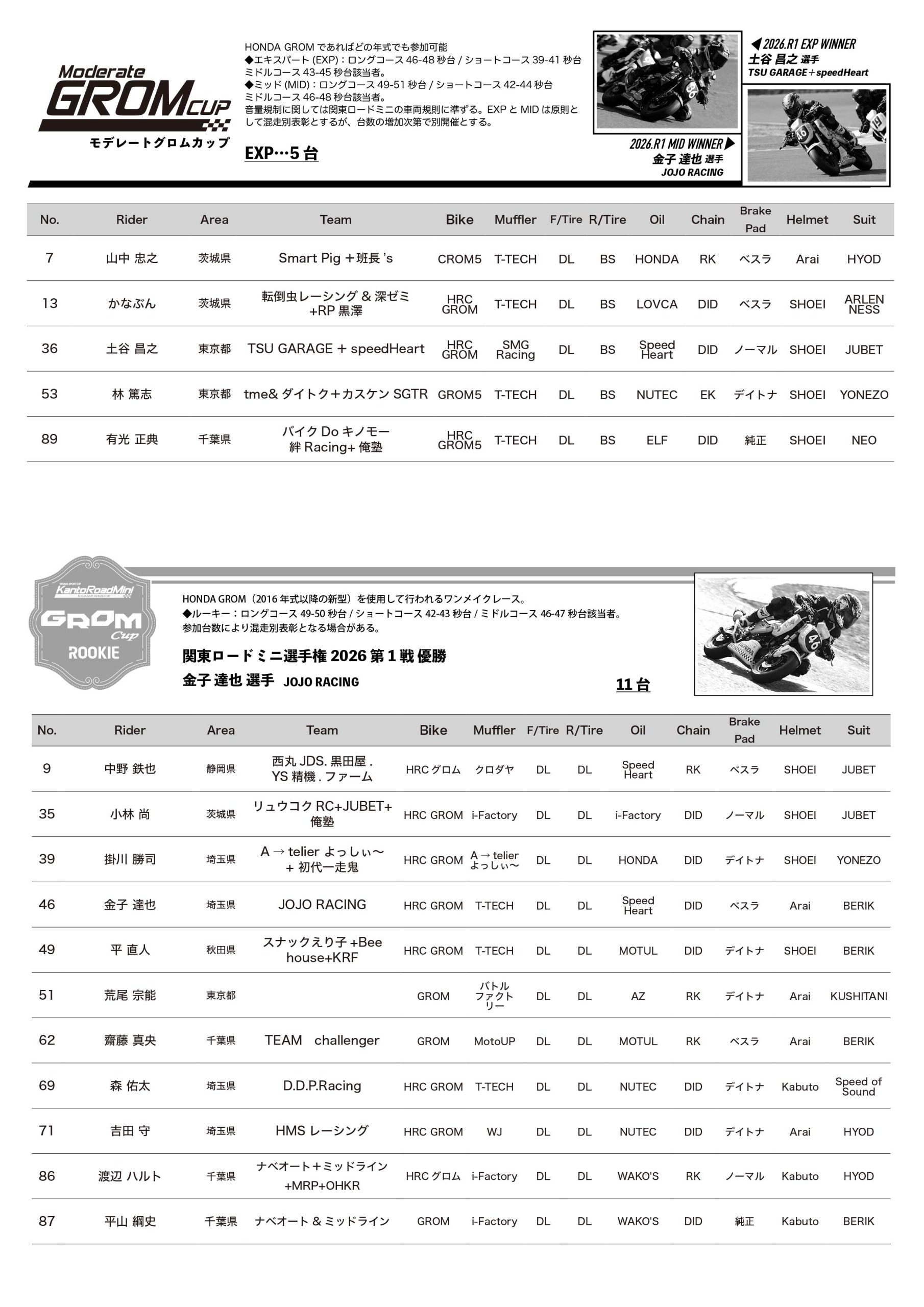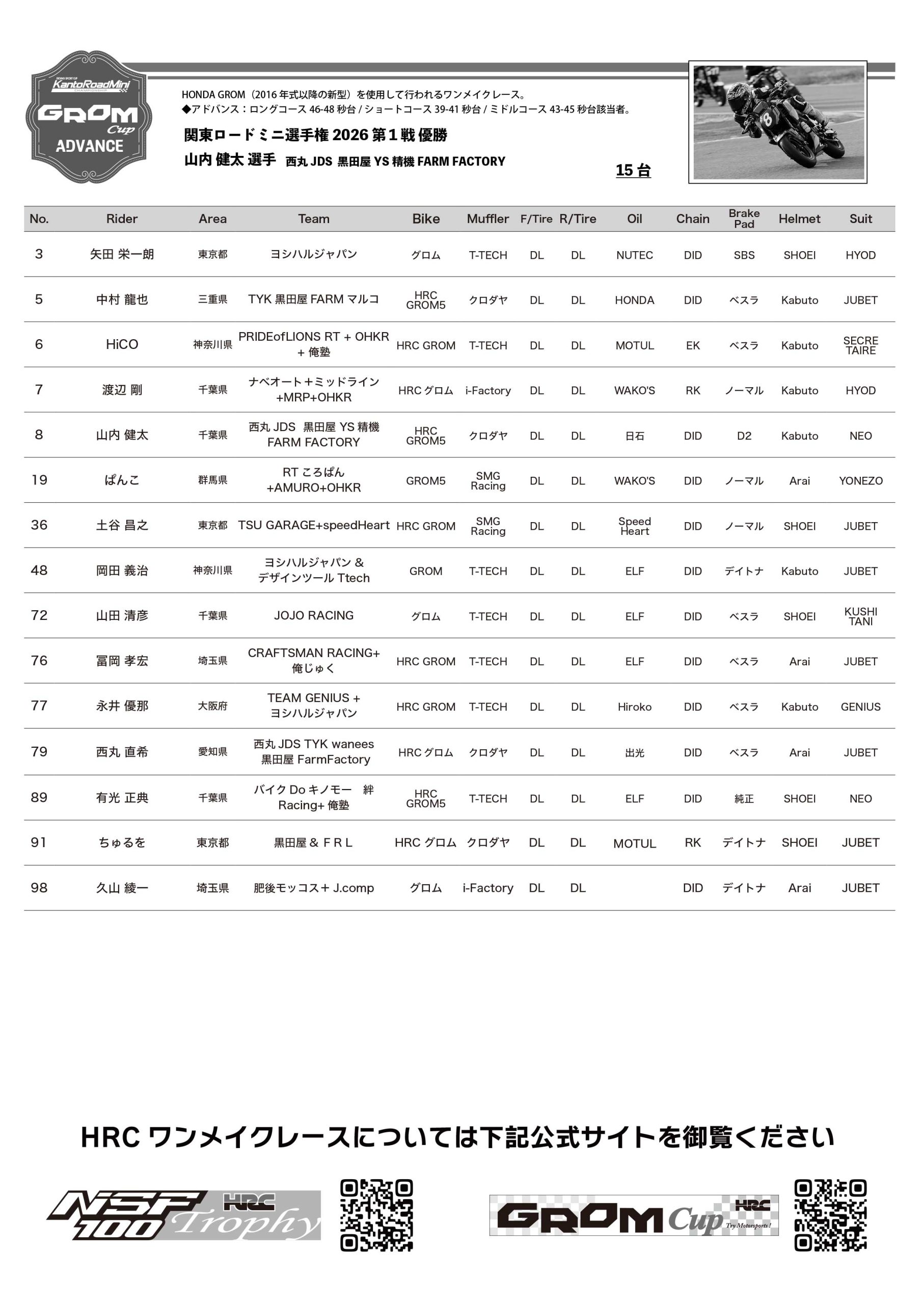 - 関東ロードミニ選手権2026第2戦リザルトダウンロード(PDF)
